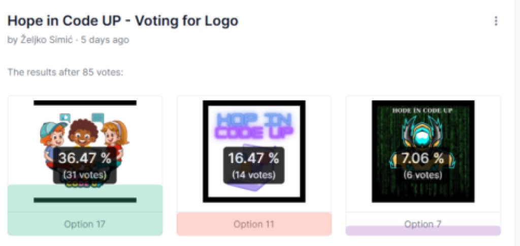 Okulumuz Bilişim teknolojieri öğretmeni Gülsün YÖRÜR'ün de ortaklarından olan "Hop İn code up" eTwinning projesi logo seçimi yapıldı.